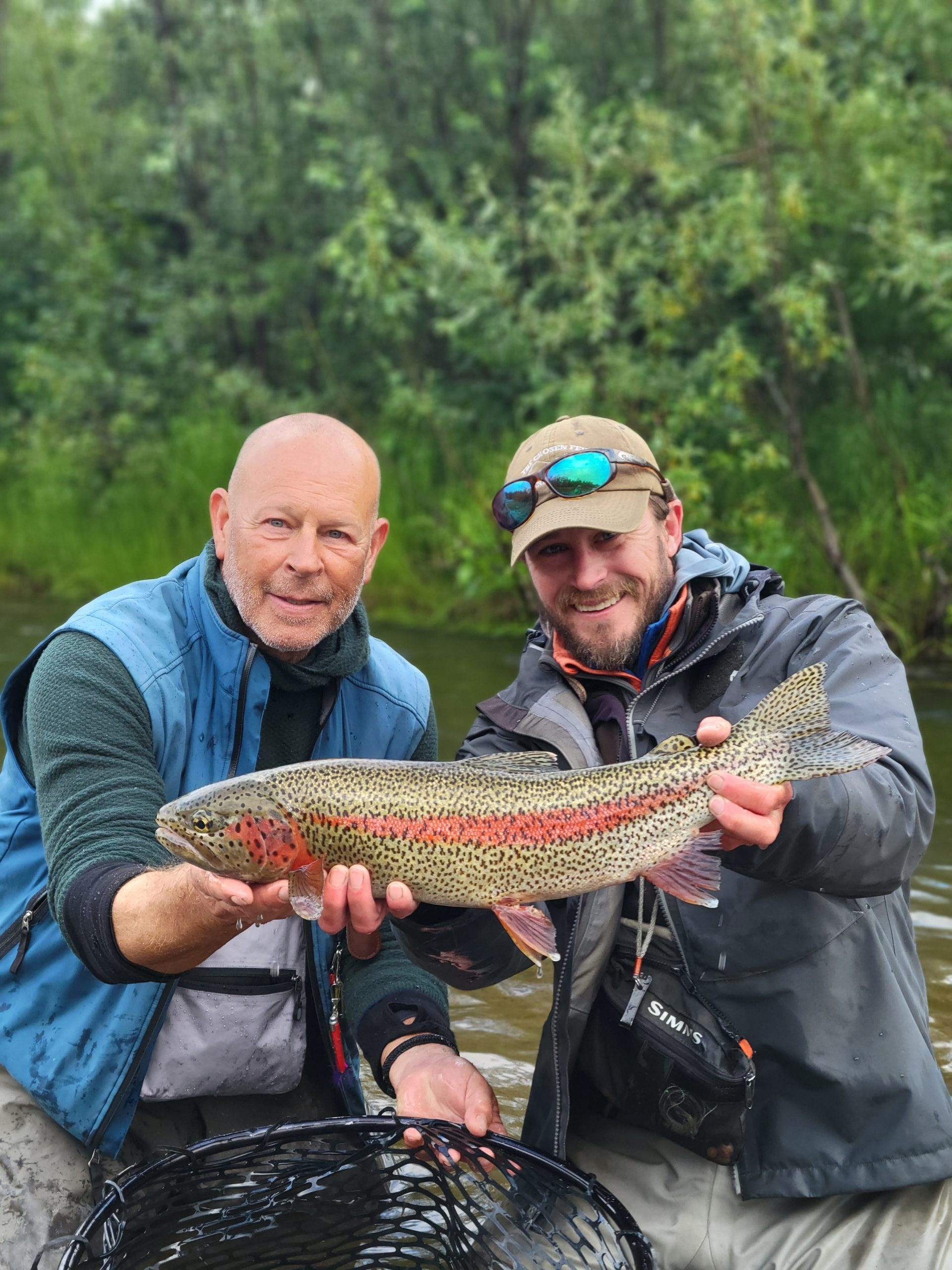 We have been very fortunate that for the last month we have had very little rain. The river is finally in great condition and it is filling up with great numbers of King, Sockeye and Chum Salmon and the Dolly Varden are thick!